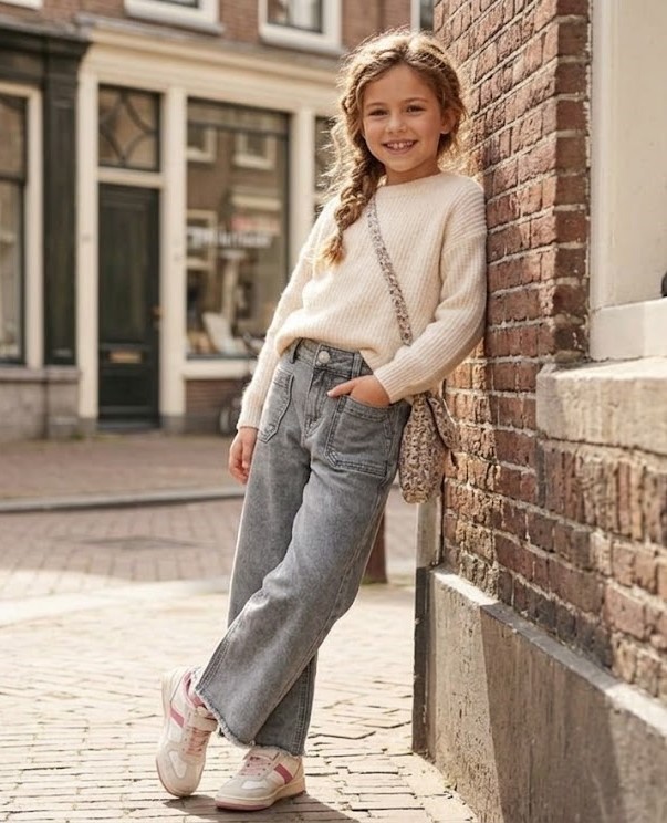 Moderna e cheia de atitude, a Calça Wide Leg em tom cinza é a escolha perfeita para as mini fashionistas que amam um visual urbano. Com lavagem estonada e bolsos frontais utilitários, ela une o estilo cargo à sofisticação do jeans escuro.